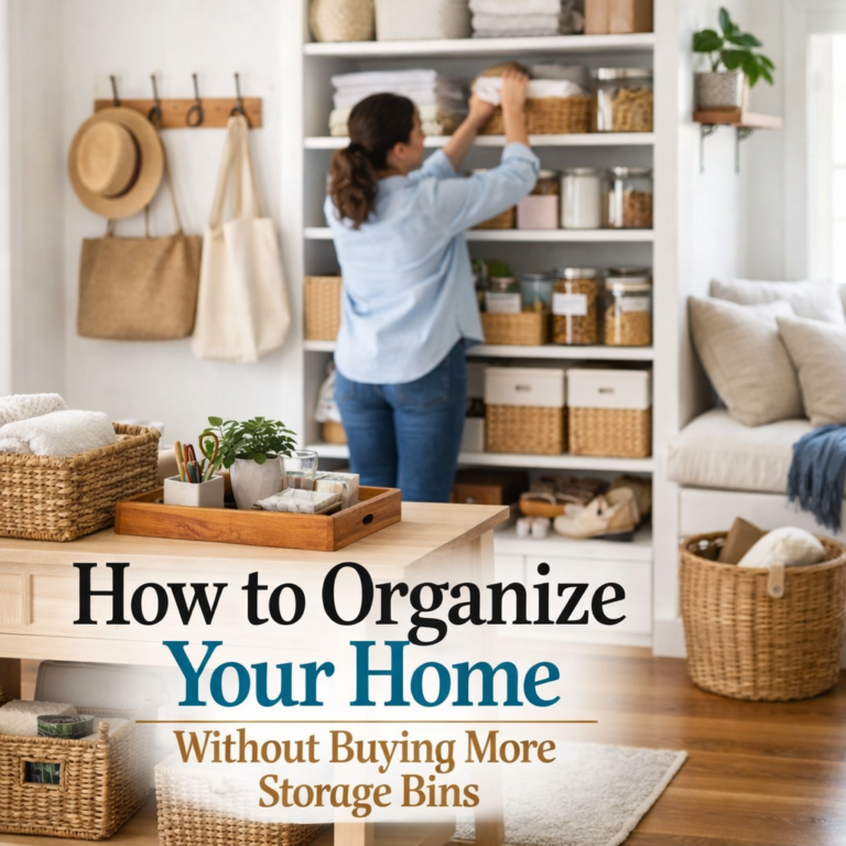 How to Organize Your Home Without Buying More Storage Bins It is easy to believe that a more organized home starts with a trip to the store. Matching bins, baskets, drawer dividers, and labels can look appealing, but they do…